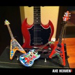 AXE HEAVEN works with various artists to create miniature masterpieces of their original work. Nicolas Leiva’s art has vibrant, colorful style and intricate detail that we painstakingly replicated. Hours went into each and every replica model. Our models are 100% handcrafted by our dedicated AXE HEAVEN artisans. From the metal tuning keys to the hand painted art detail everything detail is noted. For more information on creating a miniature guitar with us please contact us at info@axeheaven.com