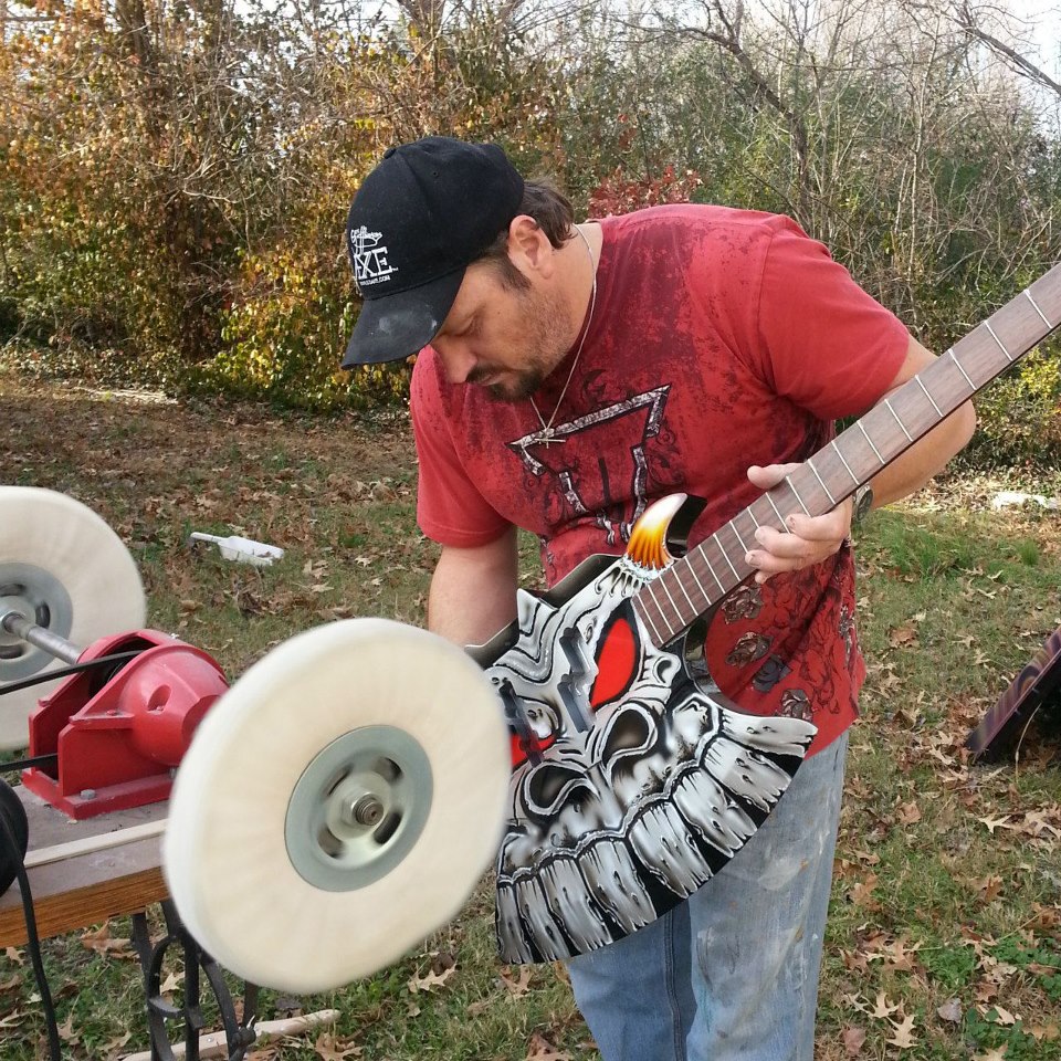 Gentry Riley’s a custom airbrush artist that has worked with many famous rocks stars over the years creating his vision of custom painted guitars. He’s been a professional airbrush artist for over 27 years. He invented two airbrush improvements and one complete airbrush; has 2 US PATENTS on airbrushes to date. Some of his work includes todays biggest rockstars custom guitars. Gentry contacted us to create some miniatures of his custom axe’s as gifts for him and his son. Our AXE HEAVEN artists did a trick job and hand airbrushed each and every miniature just like his real axe’s. He was blown away by the detail we captured in each 1:4 scale model guitar.