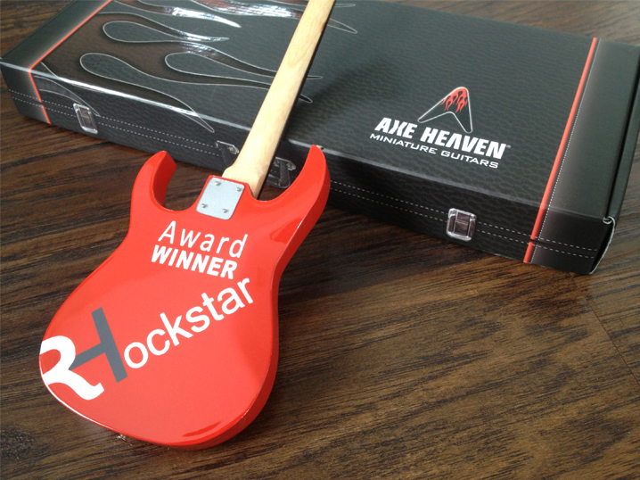 Raffetto Herman PR Firm that specializes in strategic marketing designed a really rockin mini guitar for their ROCKSTAR awards. Our product is a great fit for that special event or award.