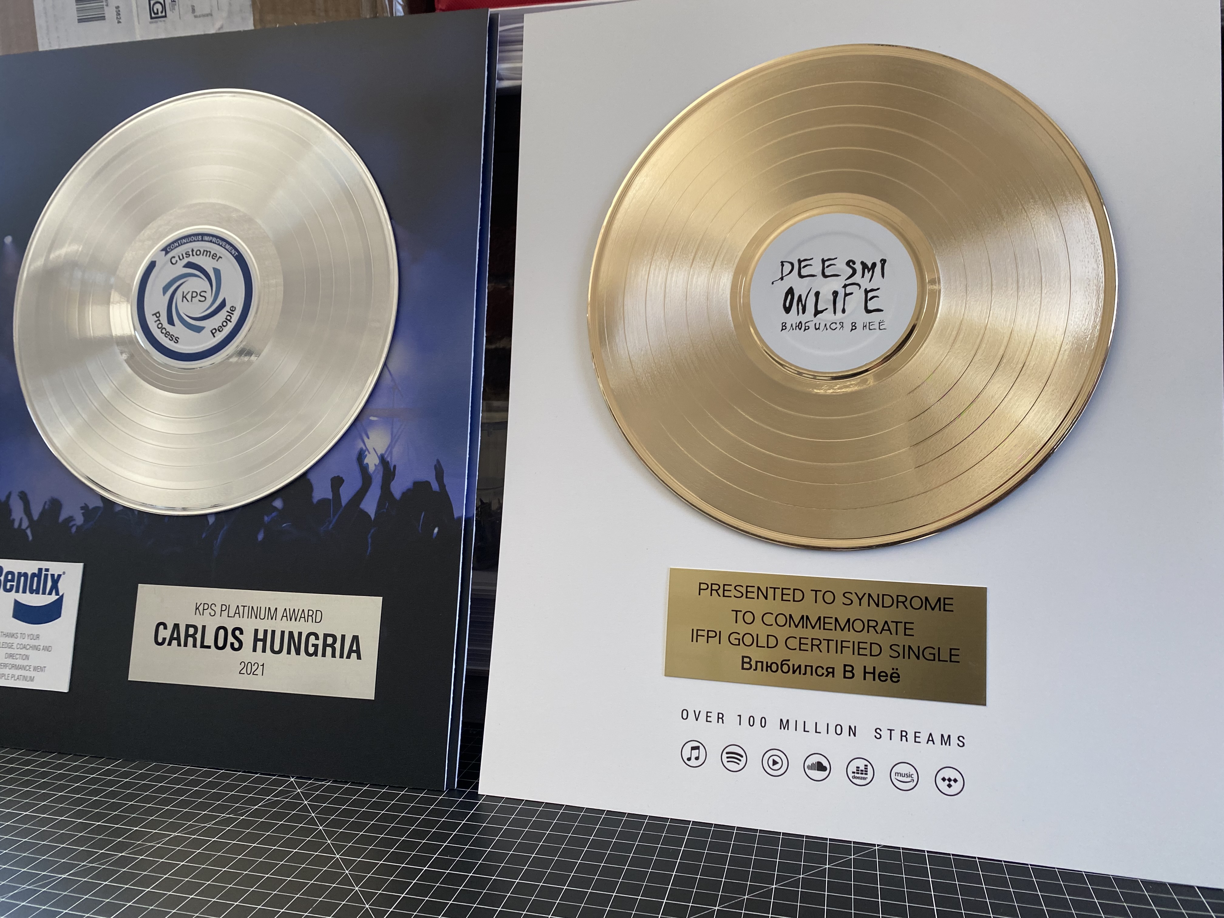 The following personalized custom artist awards have been presented for having the best merch, millions of YouTube video views, hundreds of thousands of streams, to music videos. What is more music industry perfect than a custom gold or platinum record award for achievement as an artist.