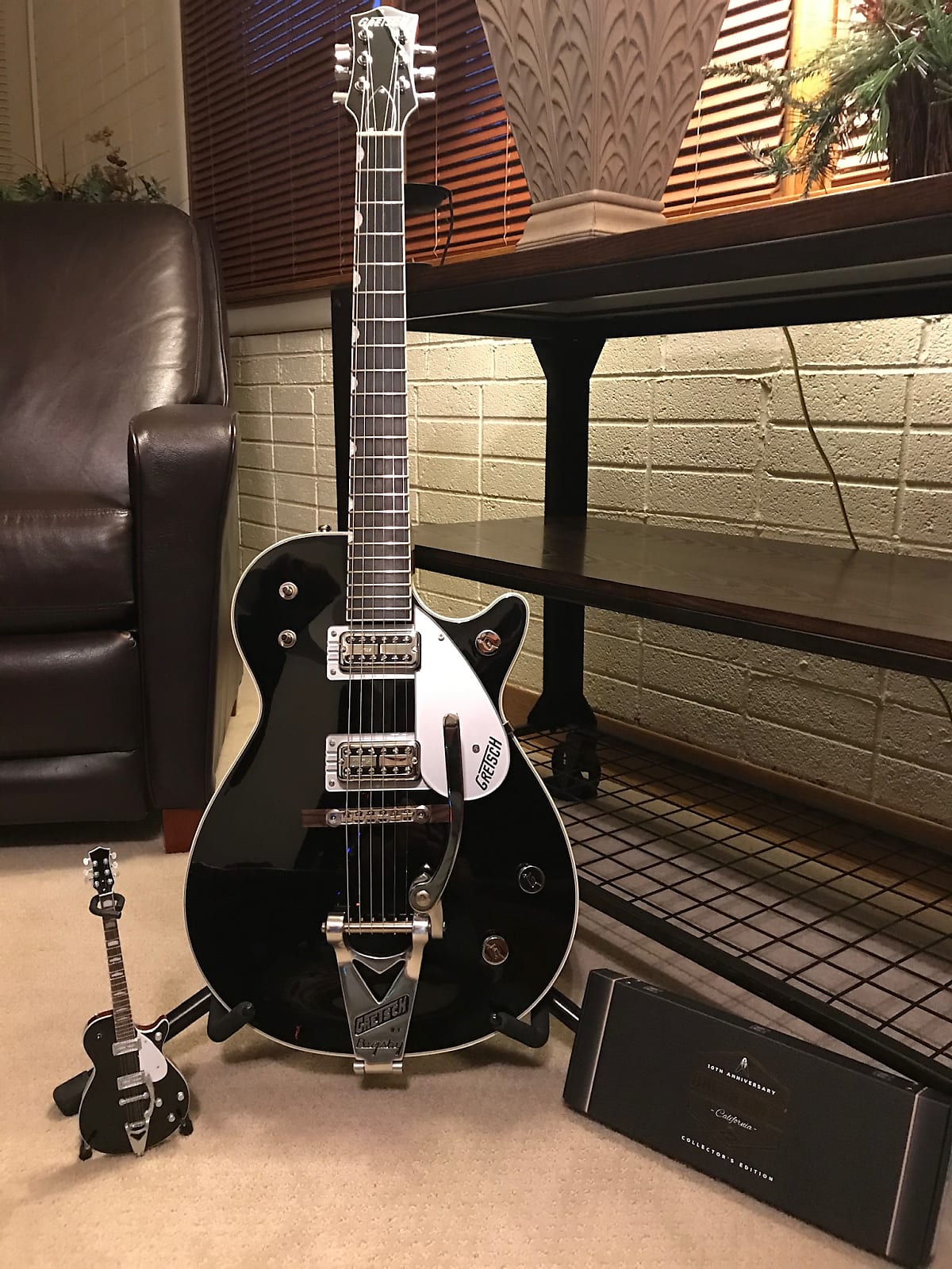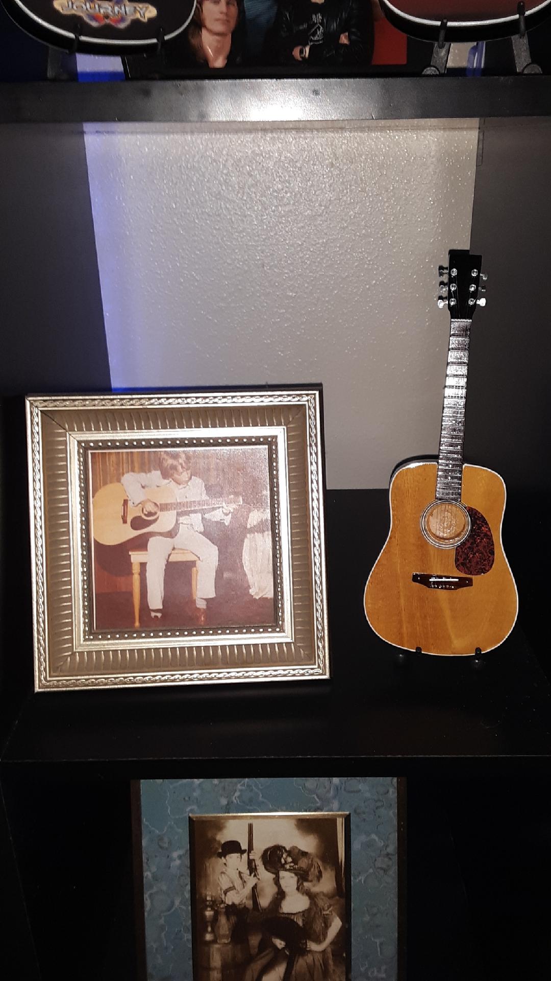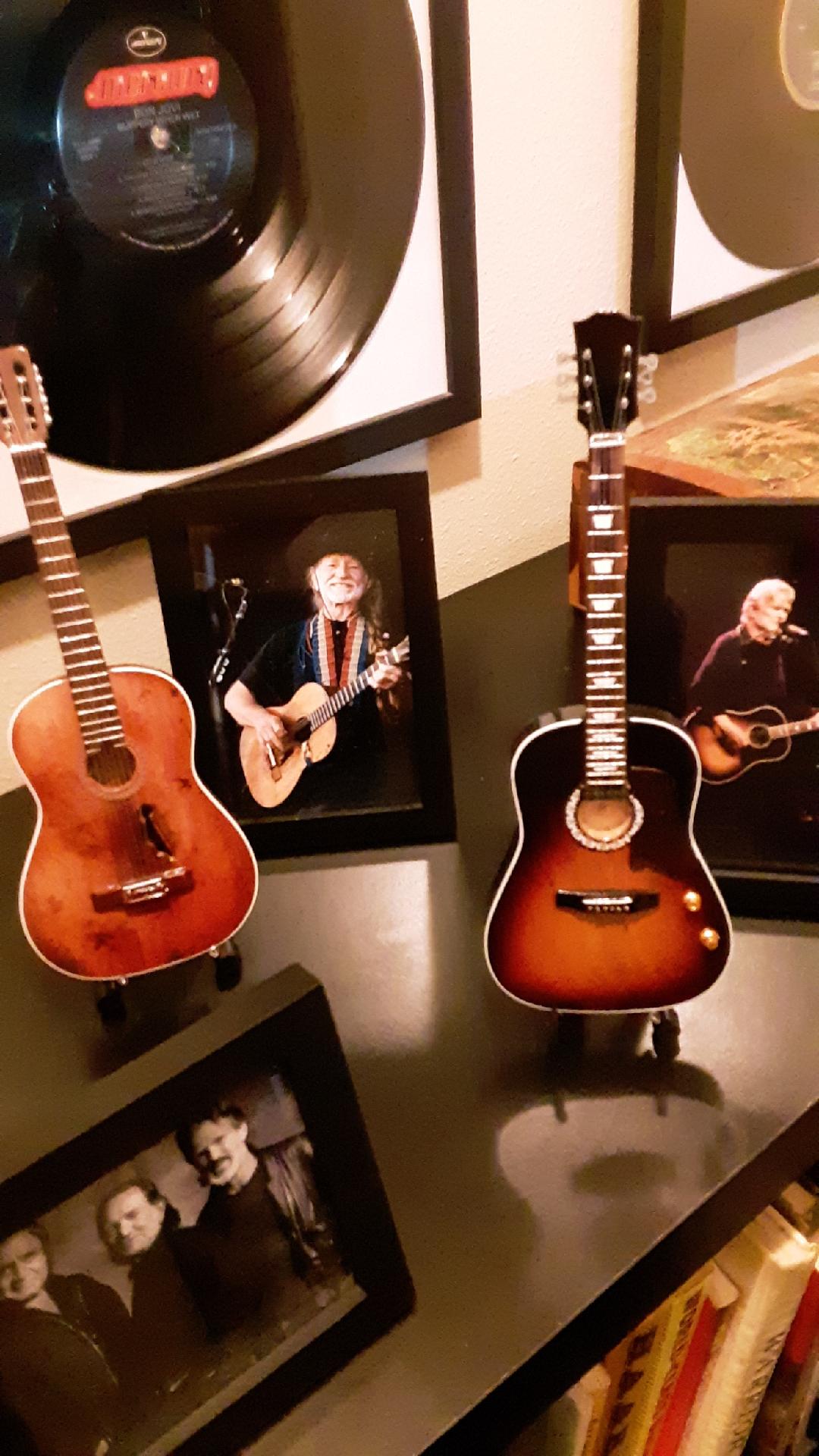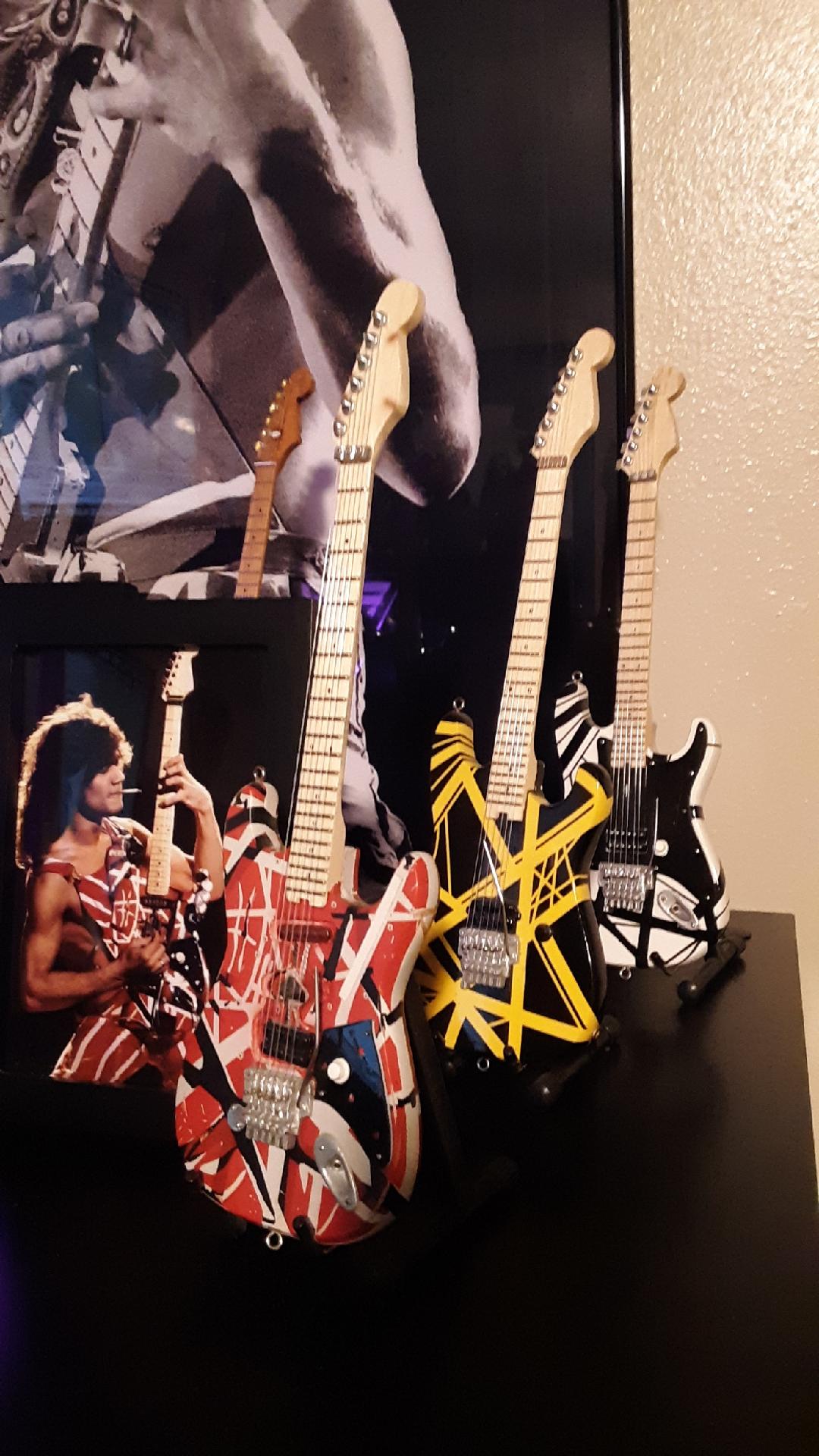 You can see our classic natural acoustic next to what looks to me to be a family photo. Every family with a guitarist in it has had some version of the acoustic dreadnought guitar, it’s a requirement at every campfire! The EVH Collection is hard to miss in these photos, you can’t have just one when it comes to this rock god. Brian here clearly loves Willie Nelson, Prince, EVH, Journey, and Johnny Cash…I bet he was born in the 70s!