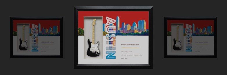 Everyone knows everything is big in Texas; so when National Western Life needed an appropriately large award to present at their sales conference in Austin, they chose an AXE HEAVEN® 22″ x 19″ Shadowbox Rockstar Guitar Award. Customized To Make a Big Impression Our Shadowboxes are handcrafted to your specifications, so they can be configured… Read More