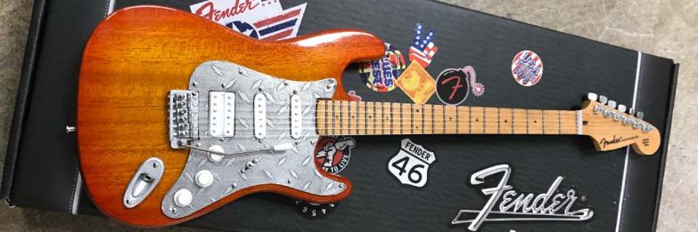 Custom Fender™ Strat™ with Natural Finish and Metal Plate Pickguard Creates Handheld Industrial Elegance